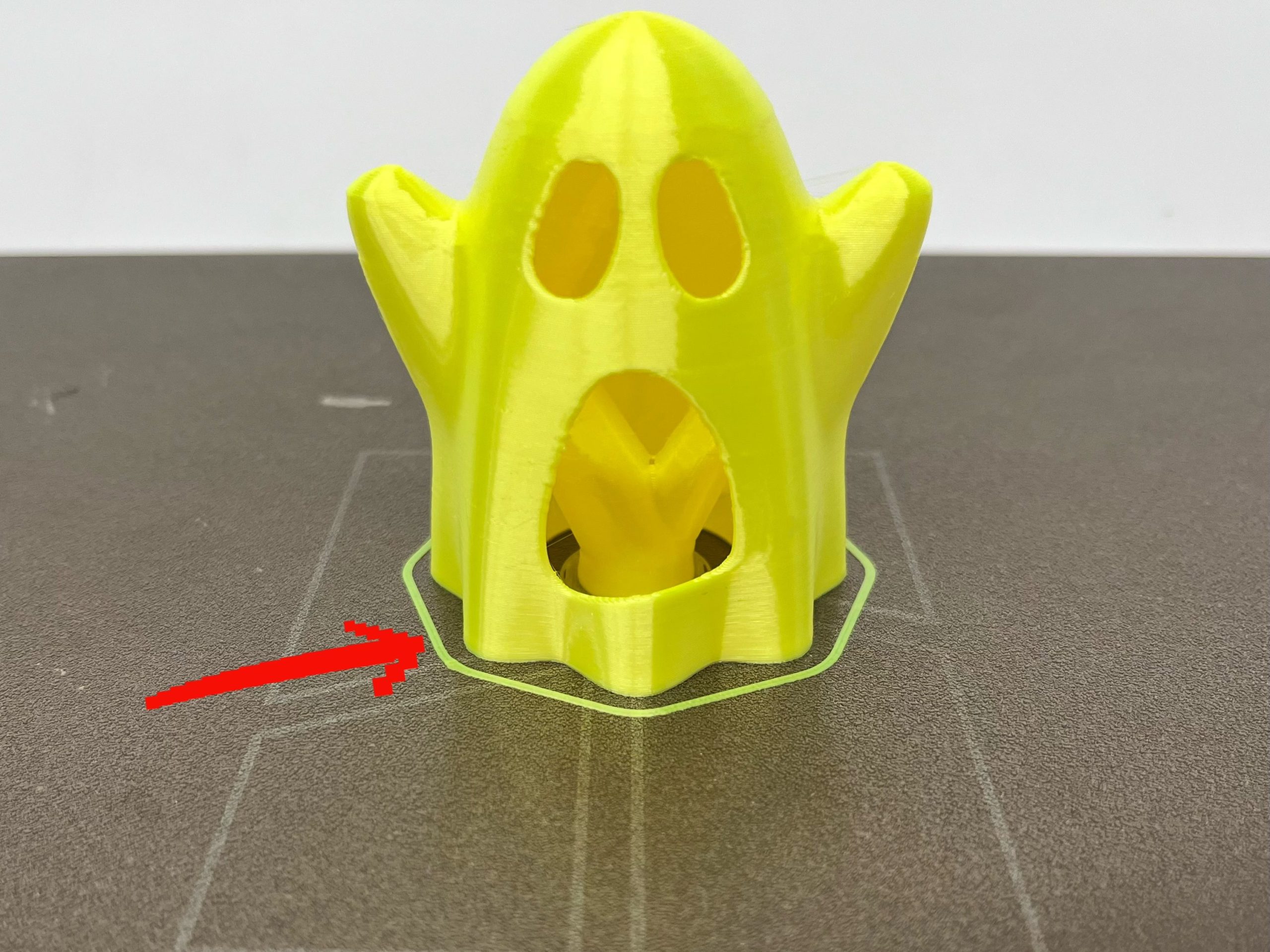 Nach dem Druck muss der Brim entfernt werden. Dabei kann am Rand eine feine Linie entstehen, die leicht nachbearbeitet werden sollte. Bei sehr komplexen Geometrien ist das Entfernen etwas aufwändiger. Der Boden des Modells bleibt jedoch glatt, da der Brim nicht unter dem Objekt, sondern nur seitlich gedruckt wird.